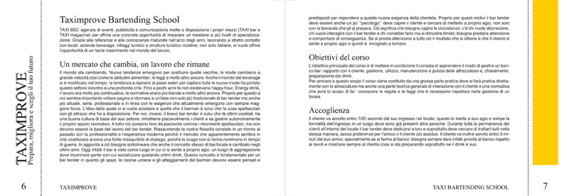 Ideazione e impaginazione del manuale per il corso di Barman "Taxi Bartending School".